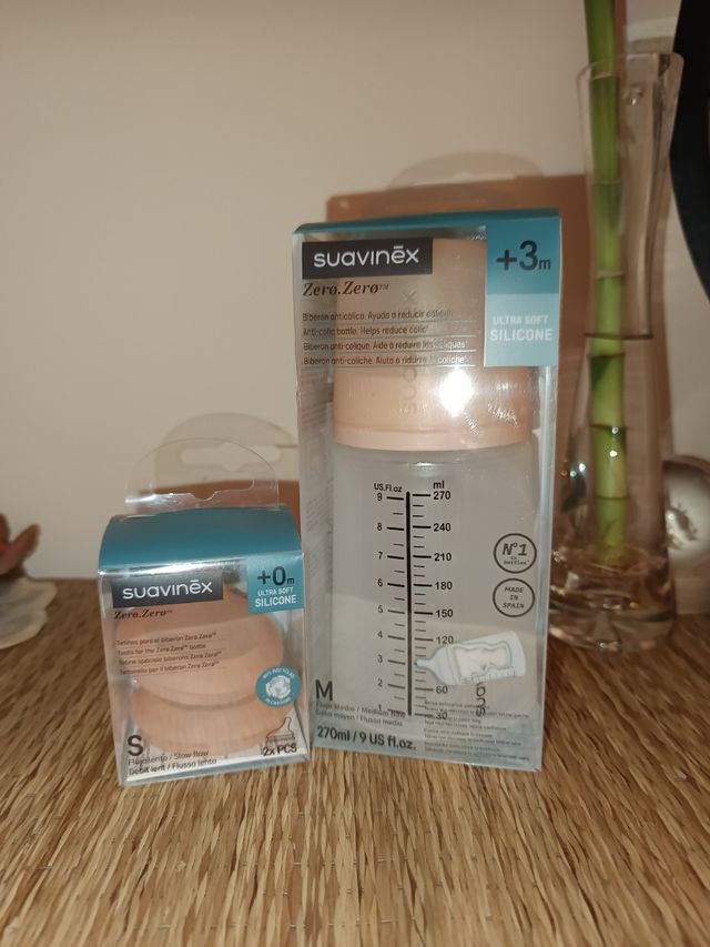 Detalles del productoBiberón Suavinex Zero Zero con tetinas de flujo lento. Usado dos veces, una por cada tipo de tetina. Mi bebé prefería otro tipo de tetina.