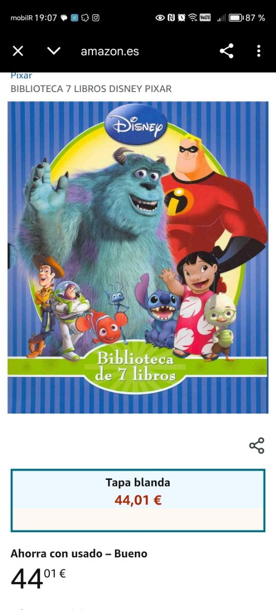 BIBLIOTECA 7 LIBROS DISNEY PIXAR