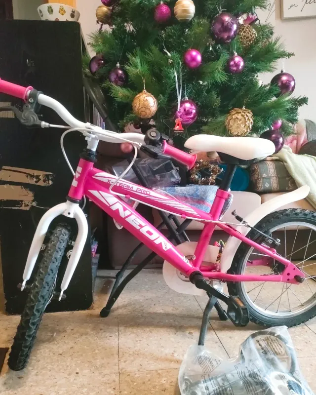 Detalles del productoBicicleta infantil de color rosa, ideal para los pequeños de 4 a 8 años, sube el sillín y el manillar bastante, cuenta con ruedas de entrenamiento, sin uso de ruedines. Tiene su uso la bici pero esta genial! Nueva costó 125€. Necesita ajustar los frenos. Diámetro de ruedas 16"
