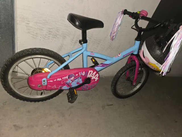 Detalles del productoBicicleta infantil de 16 pulgadas, ideal para los más pequeños. Incluye un casco a juego para mayor seguridad.