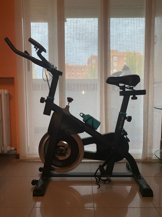 Bicicleta de spinning Cecotec DrumFit Indoor 10000 Race. - Diseño moderno en color negro. - Incluye portabidón.