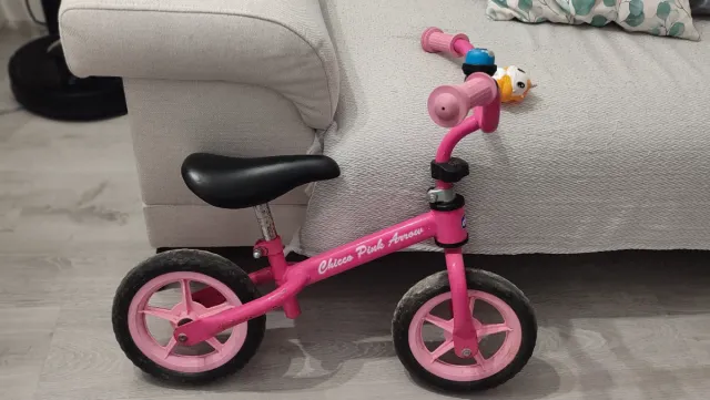 Bicicleta de aprendizaje color rosa de la marca Chicco. - Modelo Pink Arrow. - Diseño infantil. - Ruedas de goma. - Puños de goma para mejor agarre.