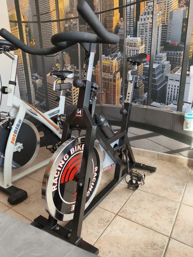Bicicleta de spinning de la marca Racing Bike. - Diseño robusto y estable. - Volante de inercia grande. - Manillar ajustable. - Sillín cómodo y ajustable.