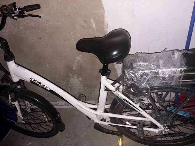 Bicicleta eléctrica Coluer en color blanco. Ideal para desplazamientos urbanos. - Cuadro de aluminio. - Ruedas de 26 pulgadas. - Sillín cómodo. - Portabultos trasero.