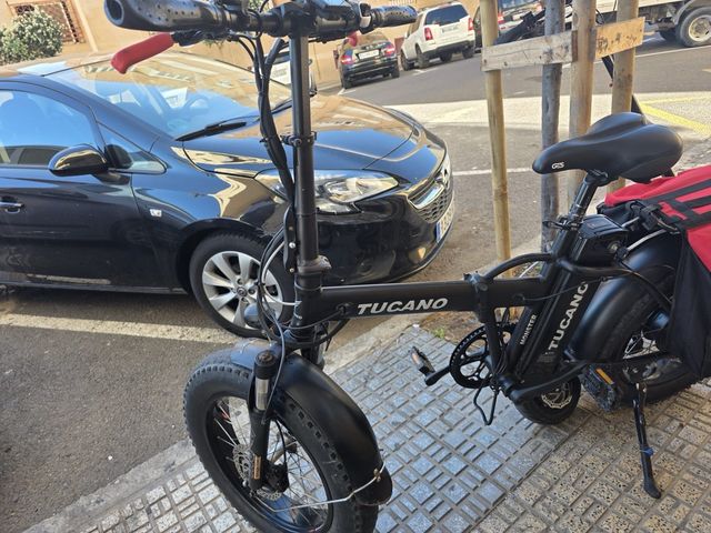 Bicicleta eléctrica Tucano con ruedas anchas (fat bike) en color negro. Sin cargador - Diseño plegable. - Manillar con puños - Sillín GRS.