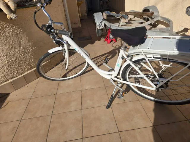 Bicicleta eléctrica de estilo urbano, ideal para desplazamientos diarios - Bateria nueva + cargador nuevo - Marco de color blanco. - Portaequipajes trasero.