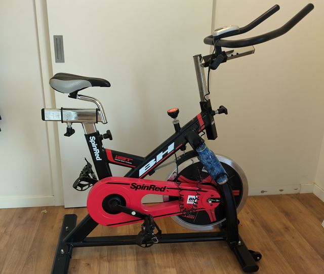 Detalles del productoBicicleta estática BH Spinred en color negro y rojo. Con manual de instrucciones.