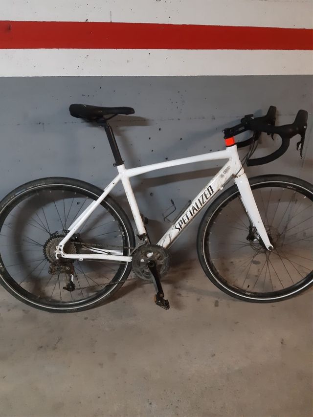 Bicicleta de gravel Specialized en color blanco. Ideal para explorar caminos y senderos. - Cuadro de aluminio. - Frenos de disco. - Transmisión Shimano. - Talla S