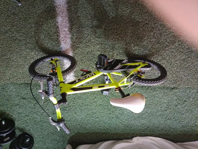 Bicicleta infantil con ruedas de 16 pulgadas. - Color verde lima. - Sillín blanco. - Pedales negros.