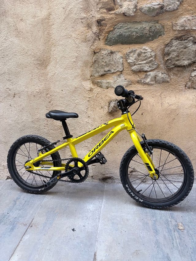 Bicicleta Orbea MX16 en color amarillo, ideal para los más pequeños. Se encuentra en muy buen estado. - Ruedas de 16 pulgadas. - Frenos de mano. - Sillín ajustable.