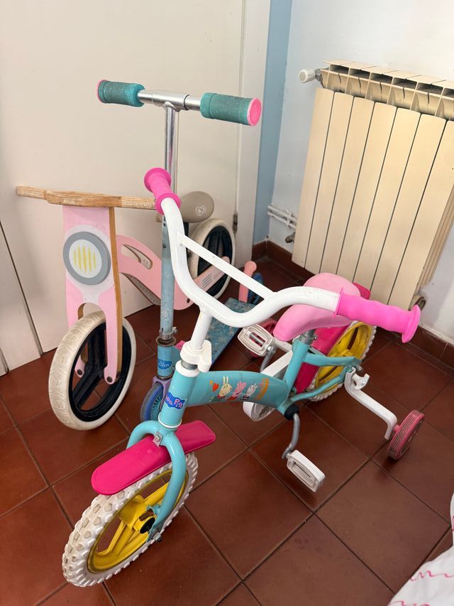 Detalles del productoLote de tres artículos para niños: bicicleta, triciclo y patinete. Ideal para iniciarse en el mundo de las dos y tres ruedas.