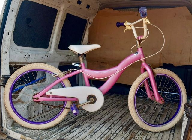 Bicicleta para niña, color rosa, en buen estado. - Llantas de 16 pulgadas. - Color rosa con detalles morados. - Asiento blanco.