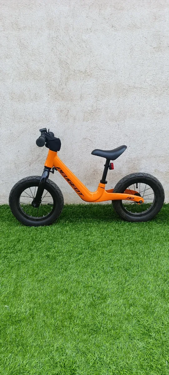 Bicicleta de equilibrio sin pedales Peugeot en color naranja. Muy cuidada en perfecto estado - Marco de metal. - Ruedas negras.
