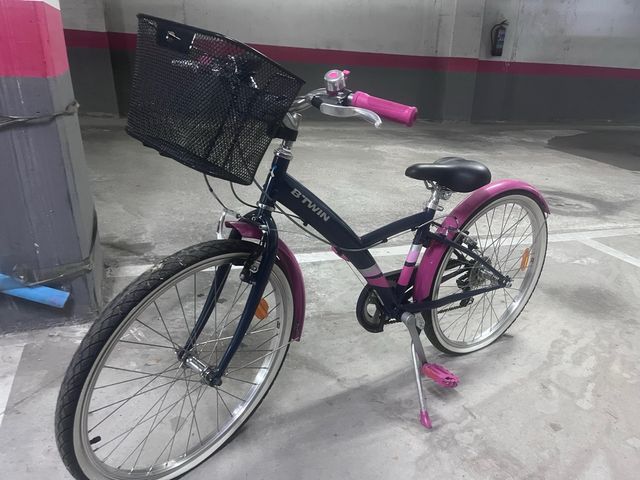 Detalles del productoBicicleta infantil de 24 pulgadas en color azul, ideal para niñas. Cuenta con una práctica cesta delantera.
