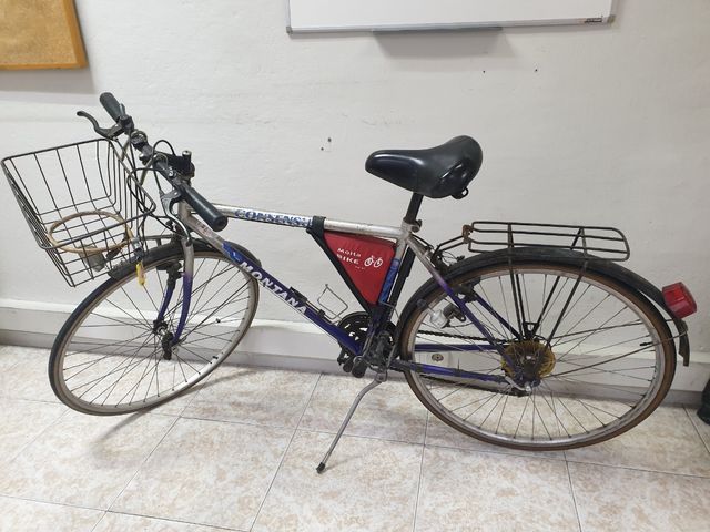 Detalles del productoBicicleta de paseo ó ciudad Consensus Montana, adulto, equipada con cesta delantera, parrilla trasera, pata lateral y cubreplatos, sillin de muelles y puños ergonomicos. Luz delantera y trasera, cambio de cinco velocidades. Candado con llave y mancha, llantas de 28 pulgadas.