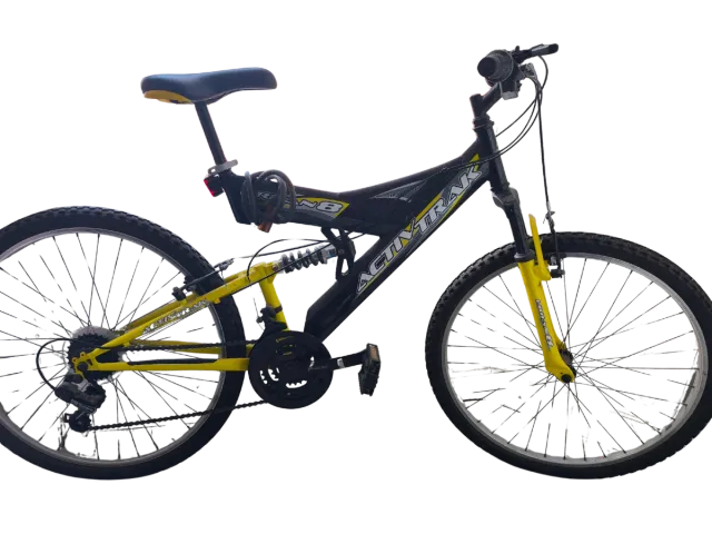 Detalles del productoBicicleta de montaña ActivTrack Urban 8 con suspensión delantera y trasera. Bomba de pie y cable antirobo.