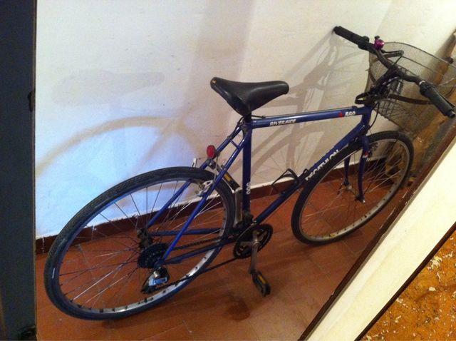 Bici marca decathlon de adulto, funciona perfectamente, ruedas bien, sillin bien, manillar un poco feo. Cesta muy robusta que se puede desmontar.