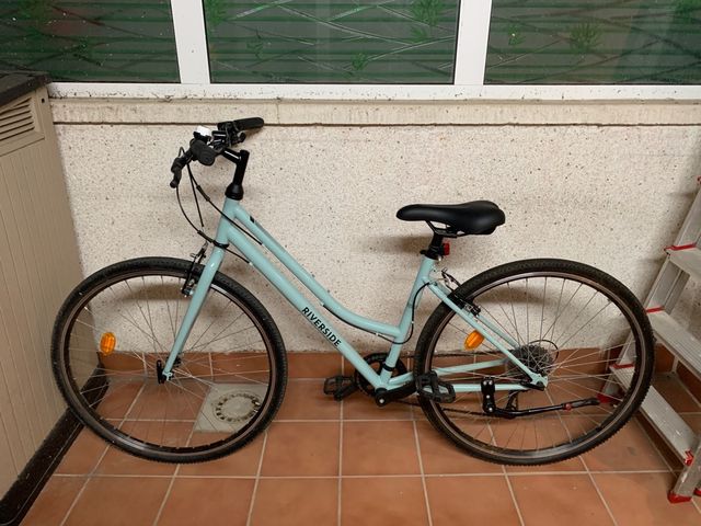 Detalles del productoBicicleta de paseo y trekking para adulto, de Decathlon. Ruedas de 28 pulgadas. Incluye timbre y bolsa.