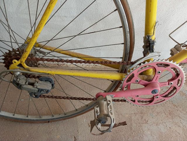 Bicicleta Amarilla con Componentes Rosas