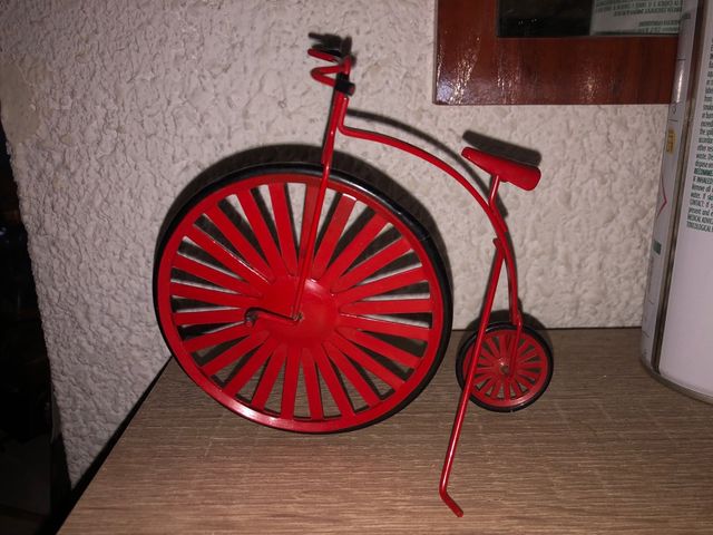 Detalles del productoRéplica decorativa de una bicicleta antigua de estilo penny-farthing.