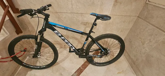 Bicicleta B Pro en color negro con detalles en azul. Ideal para disfrutar del aire libre. - Cuadro de aluminio. - Ruedas de 29 pulgadas. - Frenos de disco.