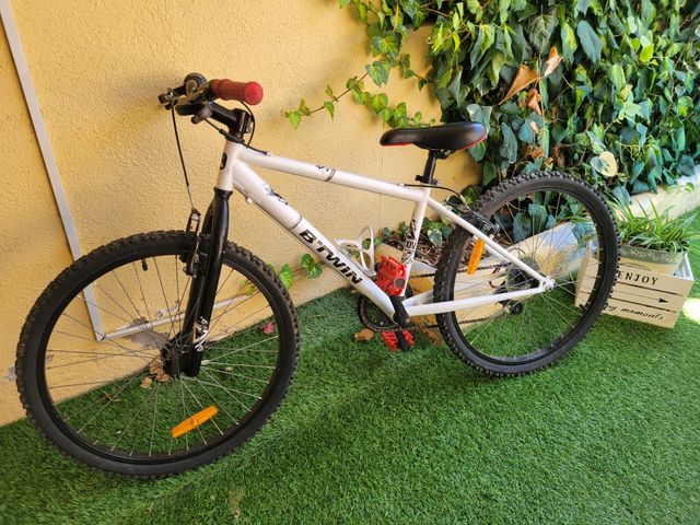Bicicleta de montaña B'Twin para niñ@s, en color blanco. Está en buen estado. - Talla 24 pulgadas