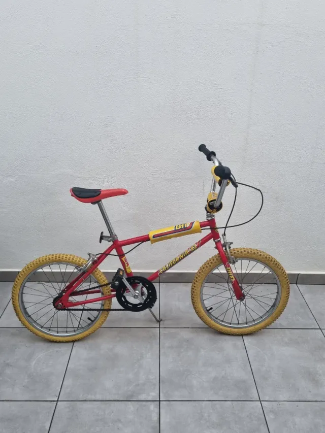 Bicicleta clásica BH California X2 en color rojo. - Cuadro de acero. - Ruedas amarillas. - Sillín rojo y negro. - Manillar amarillo.