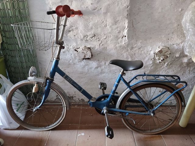 Detalles del productoBicicleta BH antigua, ideal para restaurar o usar como bicicleta de paseo. Es de color azul y se encuentra en buen estado general, aunque muestra señales de uso.