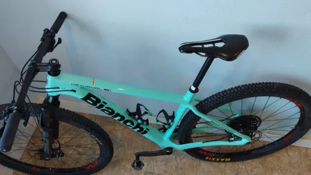 Bicicleta de montaña Bianchi Methanol 29 en color verde menta. - Cuadro de carbono. - Ruedas Maxxis. - Horquilla Rock Shox.