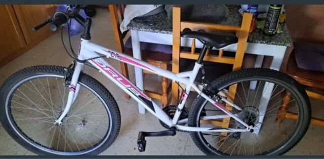Bicicleta blanca con detalles rosas