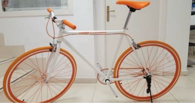 Bicicleta nueva blanca y naranja
