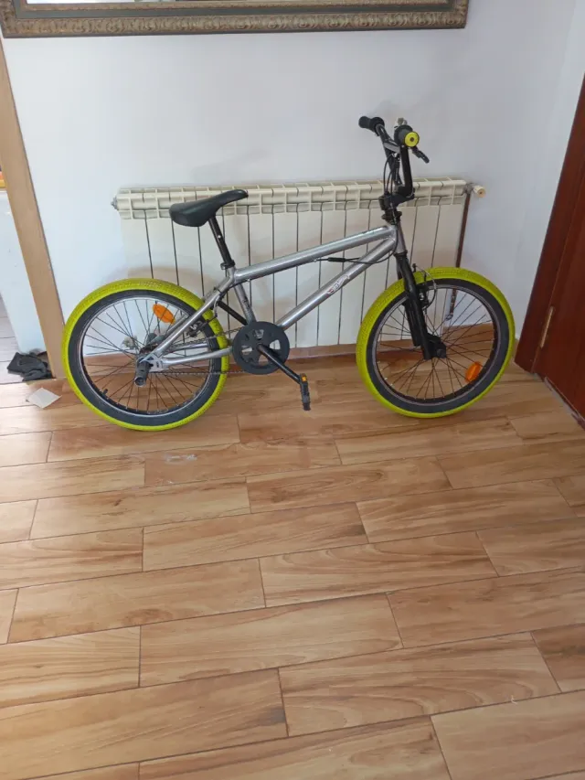 Bicicleta BMX modelo Wipe 500 con ruedas de 20 pulgadas. - Cuadro plateado. - Ruedas de color verde. - Manillar negro.
