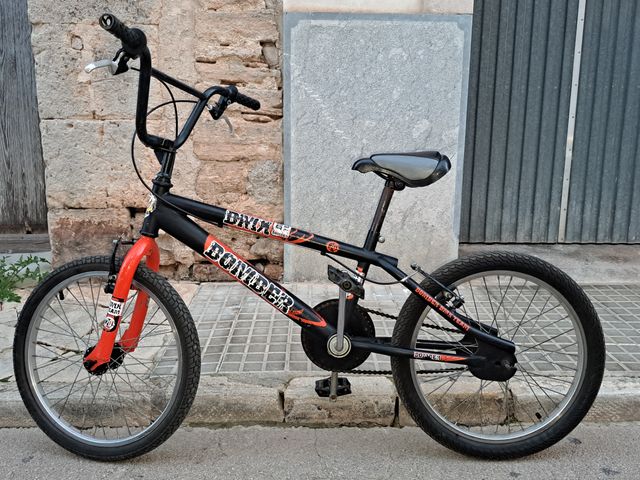 Bicicleta BMX de la marca Bomber, de color negro y detalles naranjas. - Cuadro robusto. - Ruedas de 20 pulgadas. - Manillar giratorio. - Ruedas de 20 pulgadas.