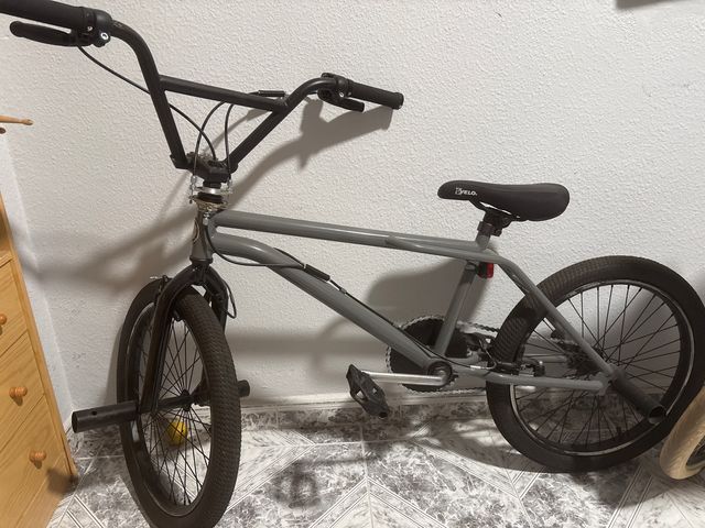 Bicicleta BMX de la marca Monty en color gris. - Cuadro de BMX. - Ruedas de BMX. - Sillín negro nuevo -cubiertas nuevas