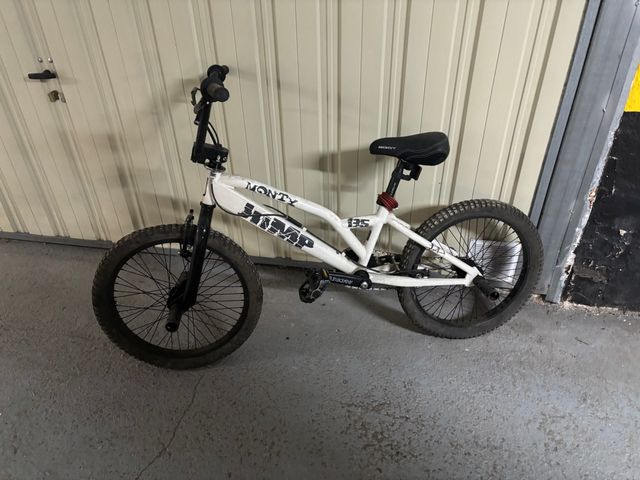 Bicicleta BMX Monty Jump 335 en color blanco. Diseñada para la acción y el estilo. - Cuadro robusto. - Ruedas de BMX. - Manillar para giros.