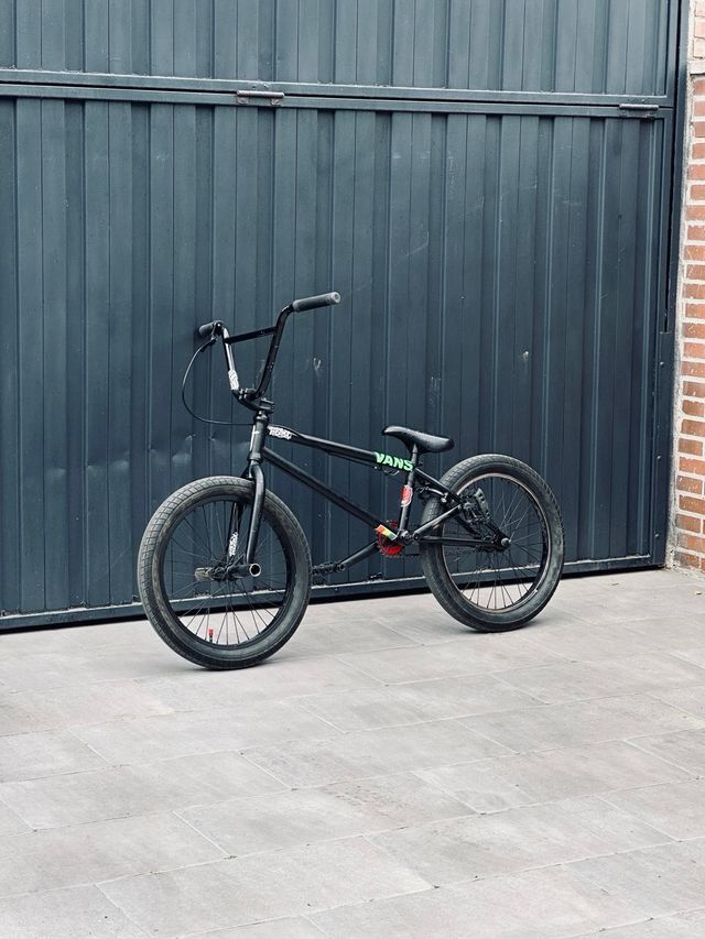 Bicicleta BMX negra hecha a piezas, funcionando perfectamente, con algúna marca de uso. Se vende por falta de uso, se puede probar sin compromiso!
