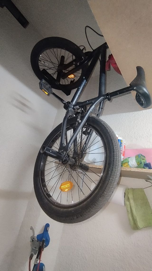 Bicicleta BMX de color negro. - Cuadro robusto. - Ruedas de buen tamaño. - Pedales reflectantes.