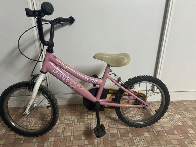 Bicicleta BMX de color rosa, ideal para niñas. Perfecta para iniciarse en el mundo del ciclismo. - Diseño llamativo con detalles gráficos. - Ruedas de 16 pulgadas.