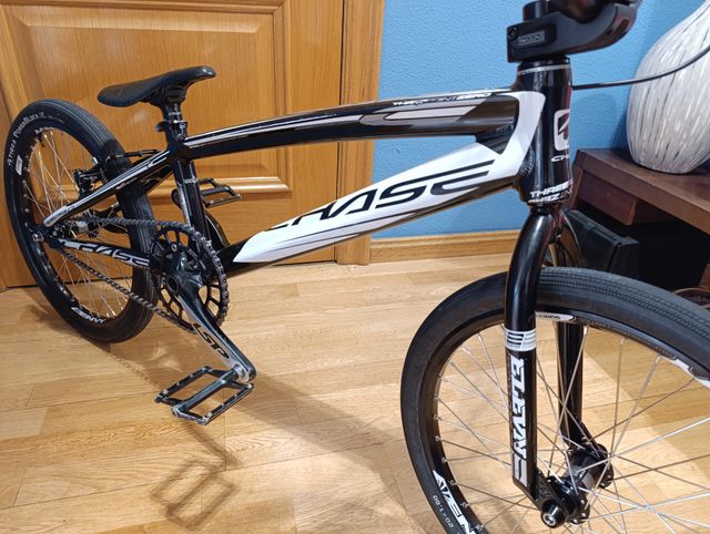 Bicicleta en muy buenas condiciones, aunque presenta marcas de uso normales en este deporte.