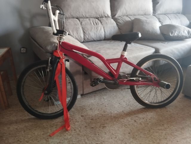Detalles del productoBicicleta BMX en buen estado. Es de color rojo y tiene un diseño llamativo.