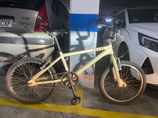 Bicicleta BMX Shark para niñ@s, en color blanco roto. Tiene algunas señales de uso, pero está en buen estado general. - Marca: Shark - Tipo: BMX - Color: Blanco roto