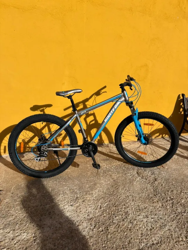 Bicicleta BTM con ruedas de 27.5 pulgadas. - Cuadro de aluminio. - Frenos de disco. - Cambio Shimano. - Color gris y azul.