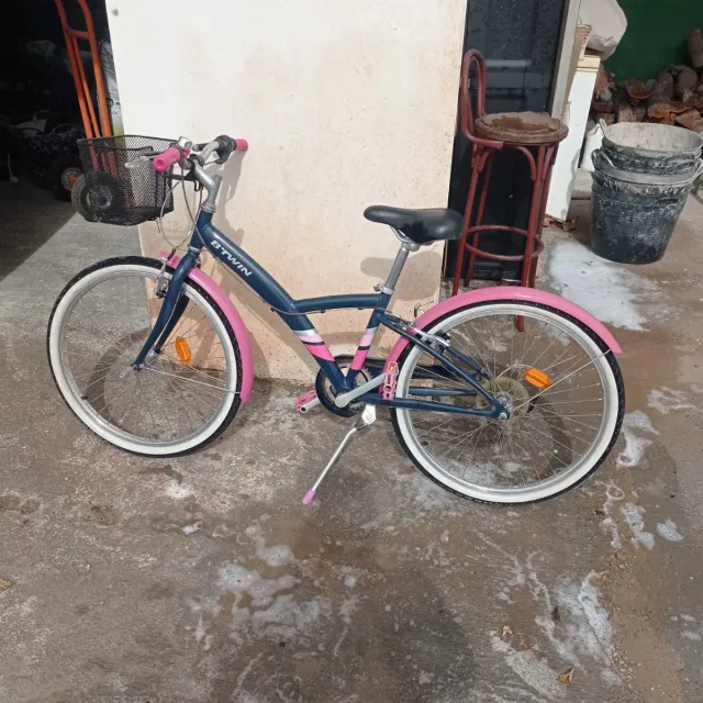 Bicicleta Btwin en buen estado, con un año de antigüedad y sin uso. - Color azul con detalles en rosa. - Incluye cesta delantera. - Guardabarros delanteros y traseros.