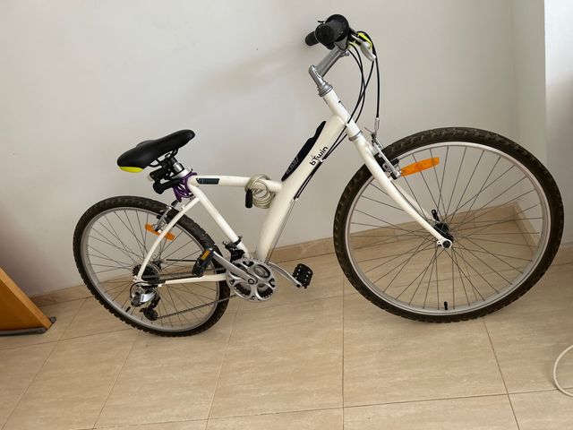 Detalles del productoBicicleta Btwin de color blanco, ideal para paseos y desplazamientos urbanos.