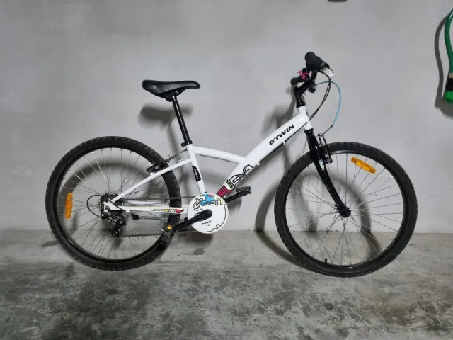 Bicicleta Btwin de color blanco, ideal para paseos. - Cuadro de aluminio. - Ruedas de 24 pulgadas. - Frenos V-brake.