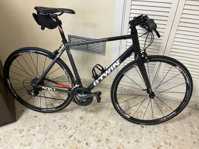 Detalles del productoBicicleta de carretera Btwin en color negro. Apenas sin kilómetros. Ideal para entrenamientos y rutas.