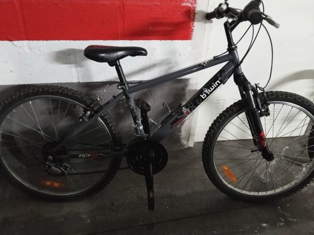 Bicicleta de montaña Btwin en color gris. - Cuadro de aluminio. - Ruedas de 26 pulgadas. - Frenos de disco. - Suspensión delantera. Se vende por su poco uso, está como nuevo.