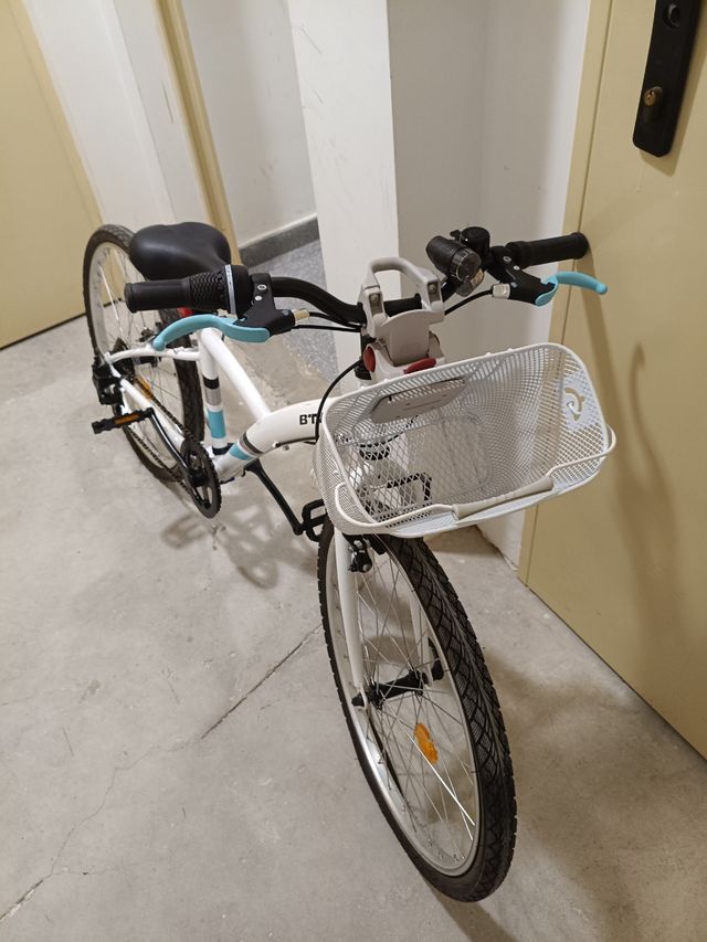 Bicicleta BTWIN Original 100 en buen estado. - Incluye cesta delantera,luz, timbre, casco y ruedines. - Bicicleta ideal para ciudad. -Para edades de 9 a 12 años.