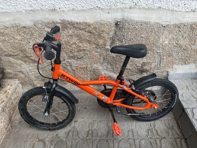 Bicicleta infantil Btwin Robot 500 en color naranja. - Ruedas de 16 pulgadas. - Diseño inspirado en robots. - Frenos adaptados para niños. 4 a 6 años