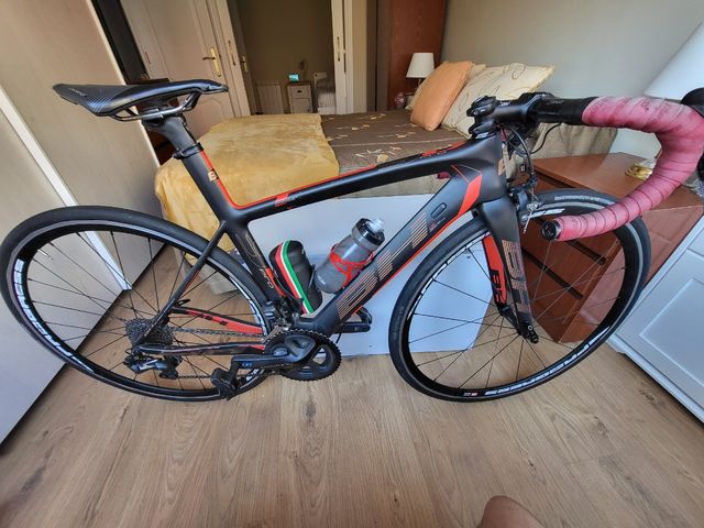 Cuadro de carbono para freno de zapata, ruedas fulcrum Racing prácticamente nuevas, cambio electrónico Ultegra 8050di2, potenciómetro stages Ultegra (bielas 170mm), platos de 52×36 y casette de 11×28.